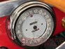 The olive green upholstery is a bold colour choice but it just works on this car, contrasting perfectly with the red paint. The leather shows light patina, presenting just like your favourite leather jacket that has been worn regularly but always cared for. There are no rips or tears in any of the upholstery. The seating position is typical for cars of that era, being quite upright, but it is relatively comfortable. The matching green carpet is also in good condition. The timber rimmed steering wheel and the two main instruments, being the counter rotating tacho and speedo, are a real feature. The fuel gauge, operated by a dash mounted button, sits within the tacho and it is a quite something! The level is indicated by how many lights come on. On our test drive all of the instruments looked to be in working order.